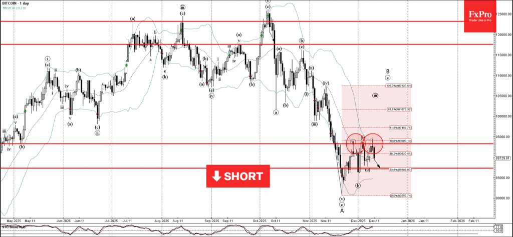 Bitcoin: ⬇️ Sell– Bitcoin reversed from resistance area– Likely to fall to support level 87330.00Bitcoin cryptocurrency recently reversed down from the resistance area between the pivotal resistance level 93285.00 (which has...