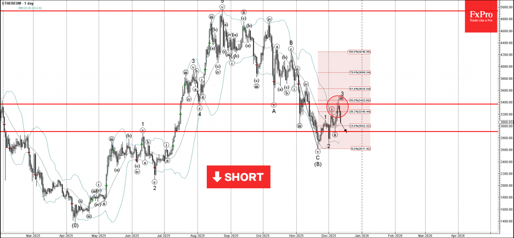 Ethereum: ⬇️ Sell– Ethereum reversed from resistance level 3400.00– Likely to fall to support level 2907.00Ethereum cryptocurrency recently reversed down with the daily Shooting Star from the resistance area between the key ...