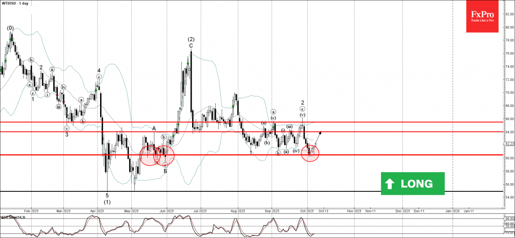 WTI crude oil: ⬆️ Buy– WTI crude oil reversed from round support level 60.00– Likely to rise to resistance level 64.00WTI crude oil recently reversed up from the support zone surrounding the round support level 60.00 (which has been r...