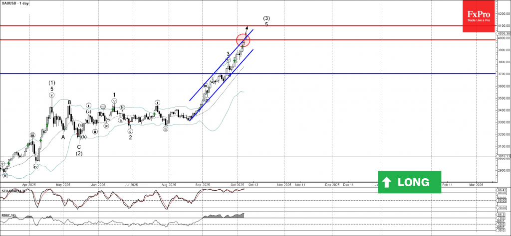 Gold: ⬆️ Buy– Gold broke round resistance level 4000.00– Likely to rise to resistance level 4100.00Gold recently broke the resistance area between the round resistance level 4000.00 and the resistance trendline of the sharp daily up c...