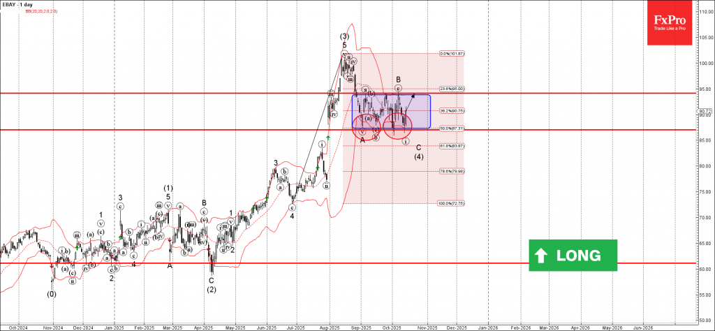 Ebay: ⬆️ Buy– Barclays reversed from key support level 87.00– Likely to rise to resistance level 94.20Ebay recently reversed from the support area between the key support level 87.00 (lower boundary of the sideways price ran...