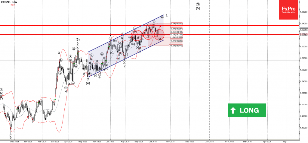 EURCAD: ⬆️ Buy– EURCAD reversed the support level 1.6200– Likely to rise to resistance level 1.6365EURCAD currency pair recently reversed up from the support level 1.6200 (former monthly high from August, which has been reversing the ...